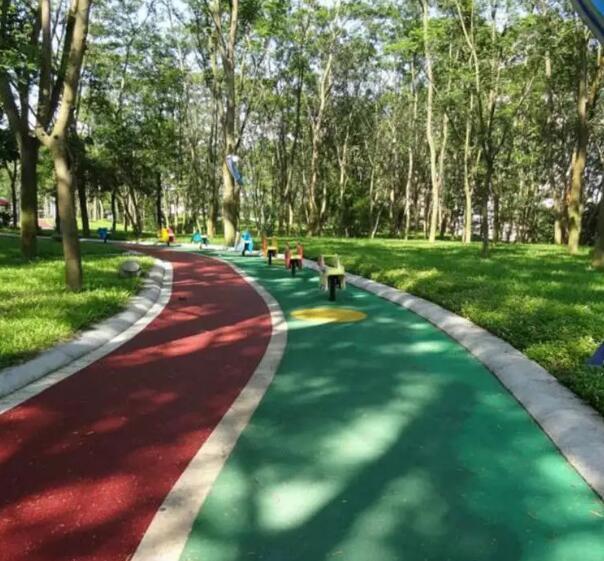 胶粘石路面使用的原材料无毒环保、色彩自然、典雅大方,环保经济,是海绵城市发展所需要的新型材料。其中胶粘石是以进口专用胶与天然彩色石子经特殊工艺制作而成,具有坚固美观、色泽自然、不易褪色的特点,它是一种新颖的艺术景观铺装材料。