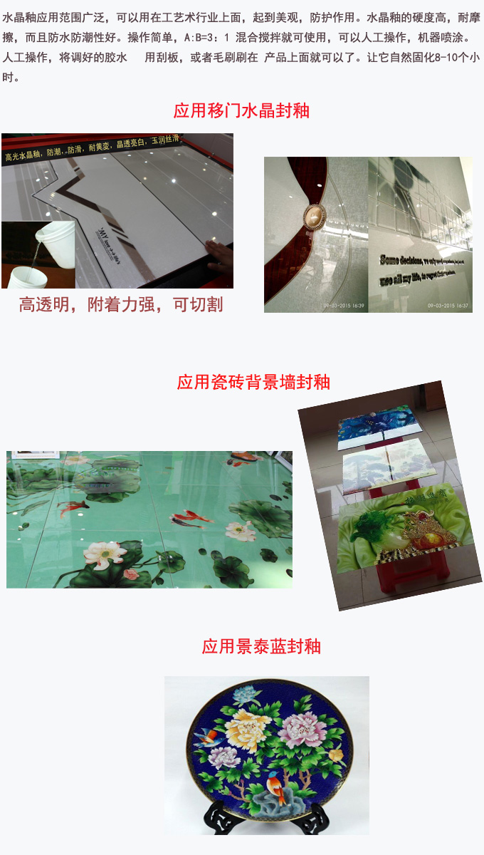 3.当相对湿度大于85%时,固化物表面容易吸收空气中水份,形成一层白雾状,因此当相对湿度 大于85%时,不适合做常温固化,建议使用加温固化。